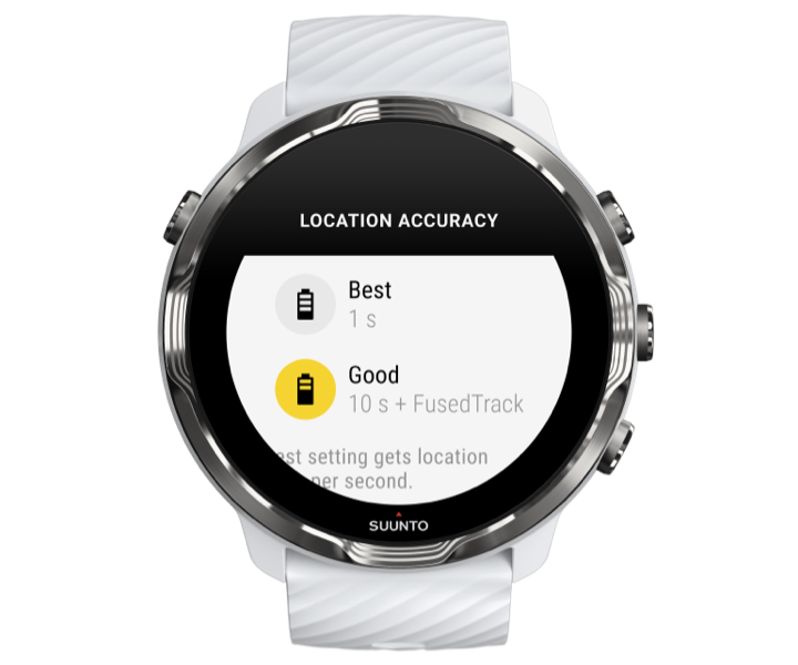 Si seleccionas precisión de ubicación 'Buena', la batería durará más mientras te entrenas al aire libre. Prepárate para sesiones más largas, o bien utilízalo cuando se te está acabando la batería y quieres seguir. A la hora de correr o pedalear, se utiliza FusedTrack™ para mejorar la calidad del seguimiento. Obtén más información sobre FusedTrack™
