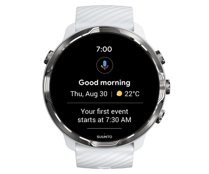 Cuando no estás haciendo ejercicio, necesitas las convenientes funciones de un reloj inteligente de tu marca de confianza. El Suunto 7 cuenta con el sistema operativo Wear OS by Google, lo que hace que sea el reloj deportivo más inteligente hasta el momento. Puedes obtener información de tus aplicaciones favoritas, comprobar cuándo tienes la siguiente reunión o qué asuntos tienes pendientes, además de ver fácilmente las llamadas y mensajes desde el reloj. Te ofrece una forma más rápida y segura de pagar con Google Pay™, ayuda inteligente con el Asistente de Google y miles de aplicaciones en Google Play.
