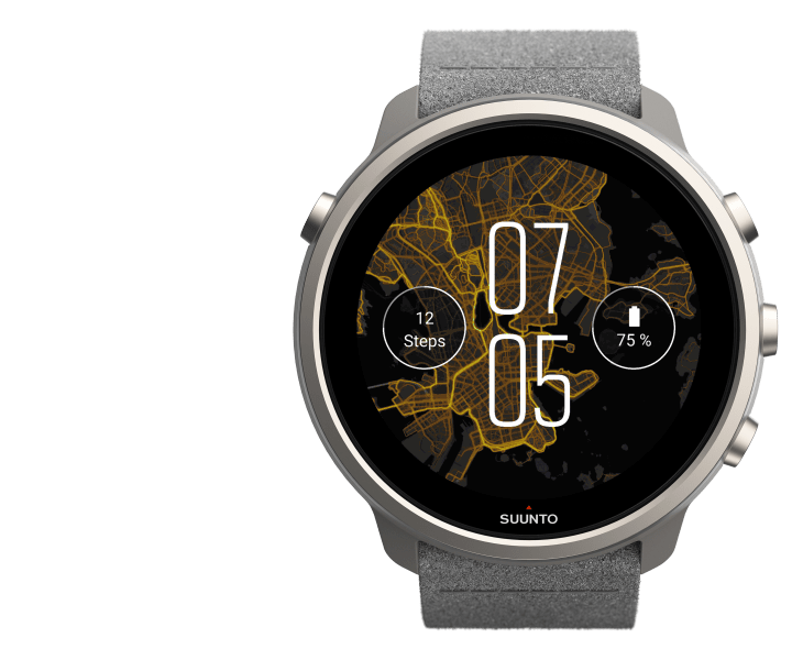 Todas las funciones deportivas del Suunto 7 están disponibles con solo pulsar un botón. Haz seguimiento preciso de tus ejercicios con más de 70 modos deportivos, GPS y un sensor de frecuencia cardíaca desde la muñeca. Comprueba rápidamente tus pasos y calorías diarias en el reloj. Comparte fácilmente tus ejercicios en la app Suunto o en los principales servicios deportivos como Strava, Adidas Running y Under Armour Mapmyrun.