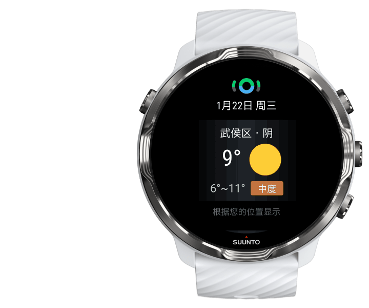 右上按键,轻松一按,即刻开启Suunto 7的运动体验。超过70种运动模式满足你的不同需求,GPS和腕上光电心率感应器可时时探测,精确追踪你的运动表现。快速在手表上查看日常步数、卡路里数据,在手机上使用Suunto应用程序,或者关联 Keep、 咕咚、悦跑圈和 郁金香 等热门运动类应用,随时记录和分享你的数据记录。详细的数据分析将帮助你更科学更有计划地训练,提升运动表现,更快接近你的目标。